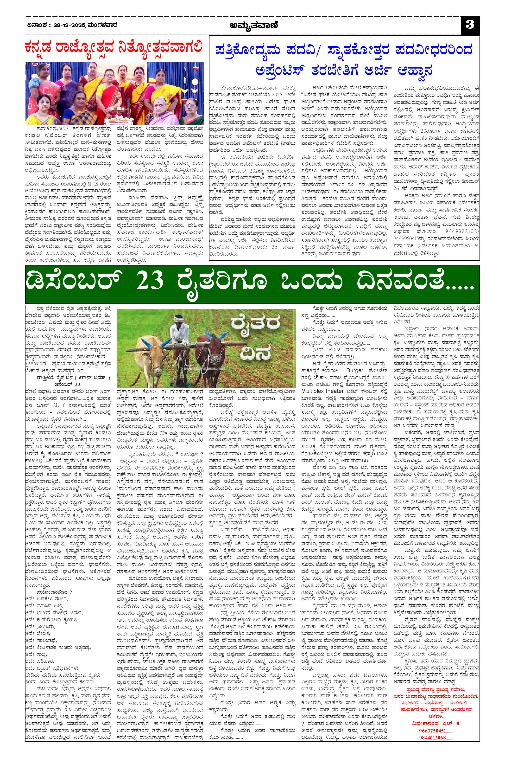 AMRUTHAVANI Page: 3 December 23, 2025 << First << 3 >> Last >> Page 1Page 2Page 3Page 4 × AMRUTHAVANI 23-12-2025.pmd-page-00123-12-2025.pmd-page-00223-12-2025.pmd-page-00323-12-2025.pmd-page-004 << First << 3 >> Last >> 23-12-2025.pmd-page-00123-12-2025.pmd-page-00223-12-2025.pmd-page-00323-12-2025.pmd-page-004 23-12-2025.pmd-page-003