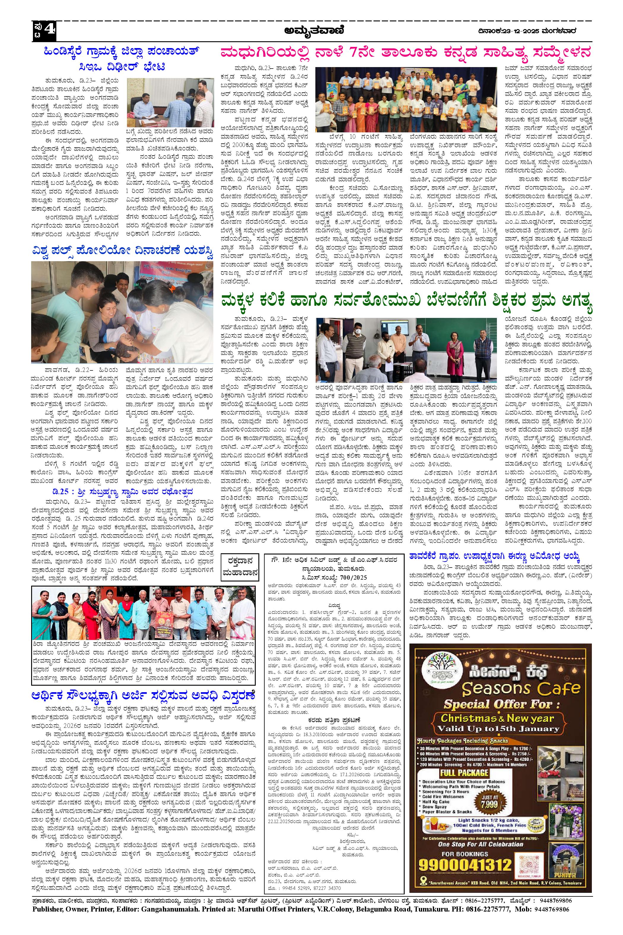 AMRUTHAVANI Page: 4 December 23, 2025 << First << 4 >> Last >> Page 1Page 2Page 3Page 4 × AMRUTHAVANI 23-12-2025.pmd-page-00123-12-2025.pmd-page-00223-12-2025.pmd-page-00323-12-2025.pmd-page-004 << First << 4 >> Last >> 23-12-2025.pmd-page-00123-12-2025.pmd-page-00223-12-2025.pmd-page-00323-12-2025.pmd-page-004 23-12-2025.pmd-page-004