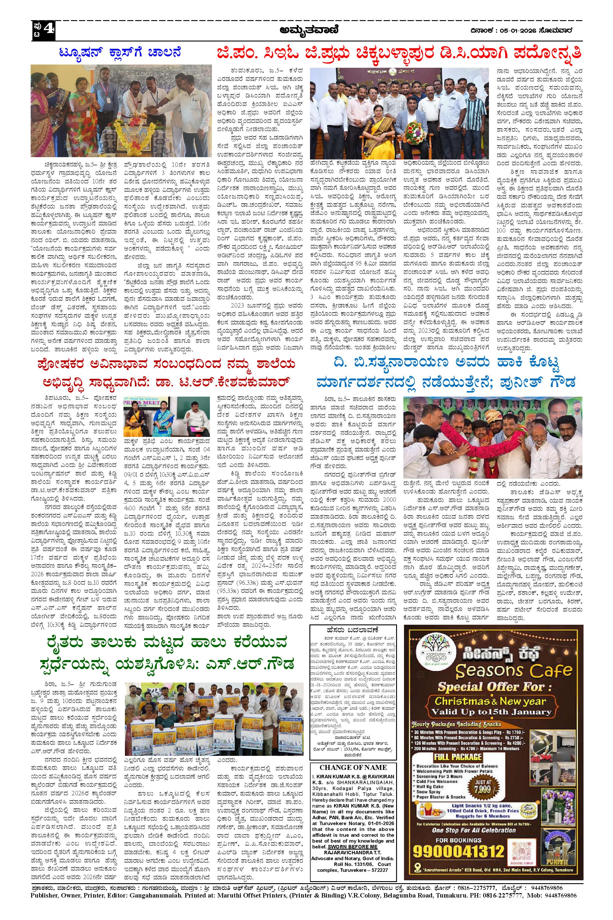 AMRUTHAVANI Page: 4 January 05, 2026 << First << 4 >> Last >> Page 1Page 2Page 3Page 4 × AMRUTHAVANI 05-01-2026.pm-page-00105-01-2026.pm-page-00205-01-2026.pm-page-00305-01-2026.pm-page-004 << First << 4 >> Last >> 05-01-2026.pm-page-00105-01-2026.pm-page-00205-01-2026.pm-page-00305-01-2026.pm-page-004 05-01-2026.pm-page-004