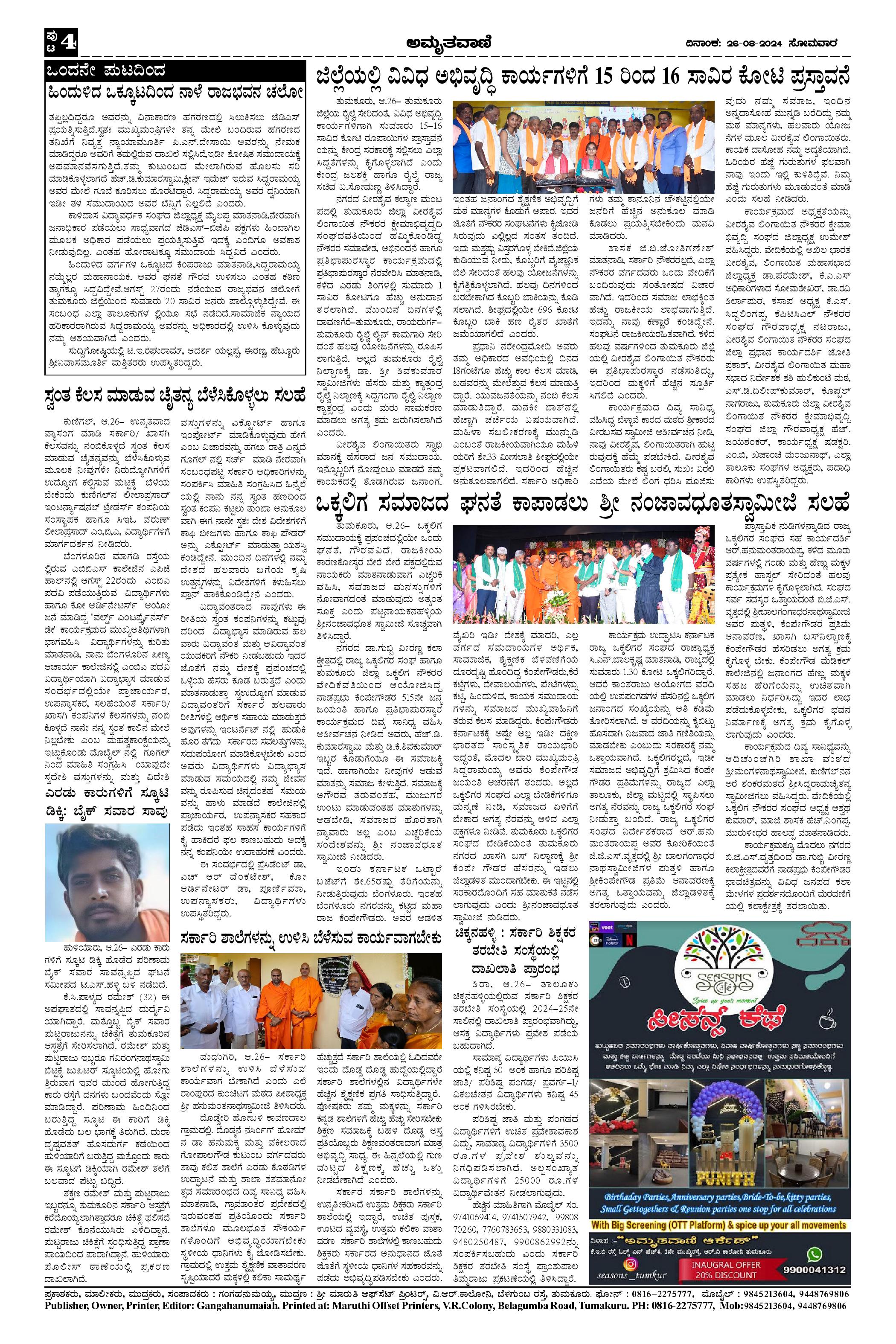 AMRUTHAVANI Page: 4 August 26, 2024 << First << 4 >> Last >> Page 1Page 2Page 3Page 4 × AMRUTHAVANI Aug26.-page-001Aug26.-page-002Aug26.-page-003Aug26.-page-004 << First << 4 >> Last >> Aug26.-page-001Aug26.-page-002Aug26.-page-003Aug26.-page-004 Aug26.-page-004