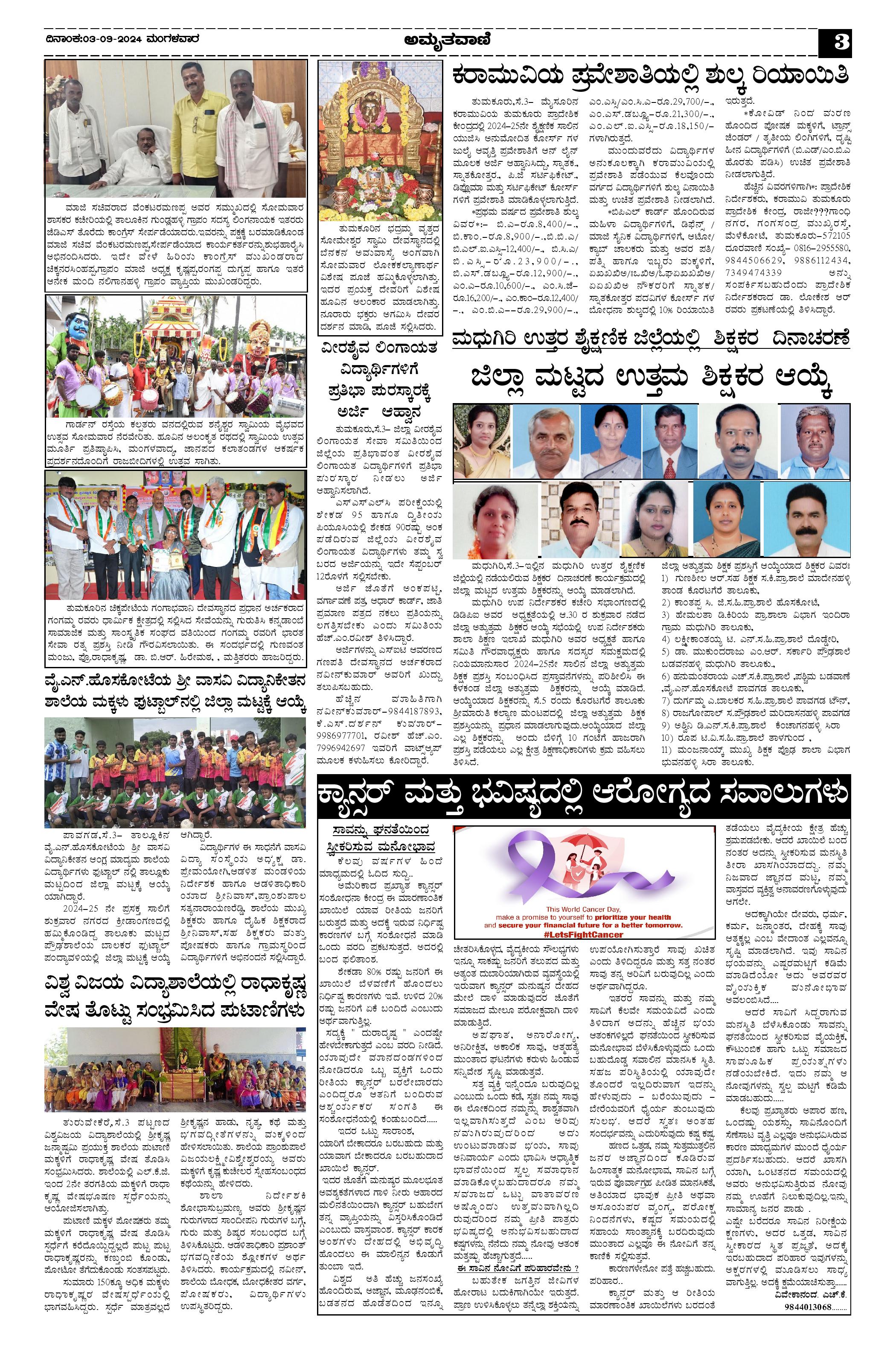 AMRUTHAVANI Page: 3 September 03, 2024 << First << 3 >> Last >> Page 1Page 2Page 3Page 4 × AMRUTHAVANI 03-09-2024.pmd-page-00103-09-2024.pmd-page-00203-09-2024.pmd-page-00303-09-2024.pmd-page-004 << First << 3 >> Last >> 03-09-2024.pmd-page-00103-09-2024.pmd-page-00203-09-2024.pmd-page-00303-09-2024.pmd-page-004 03-09-2024.pmd-page-003