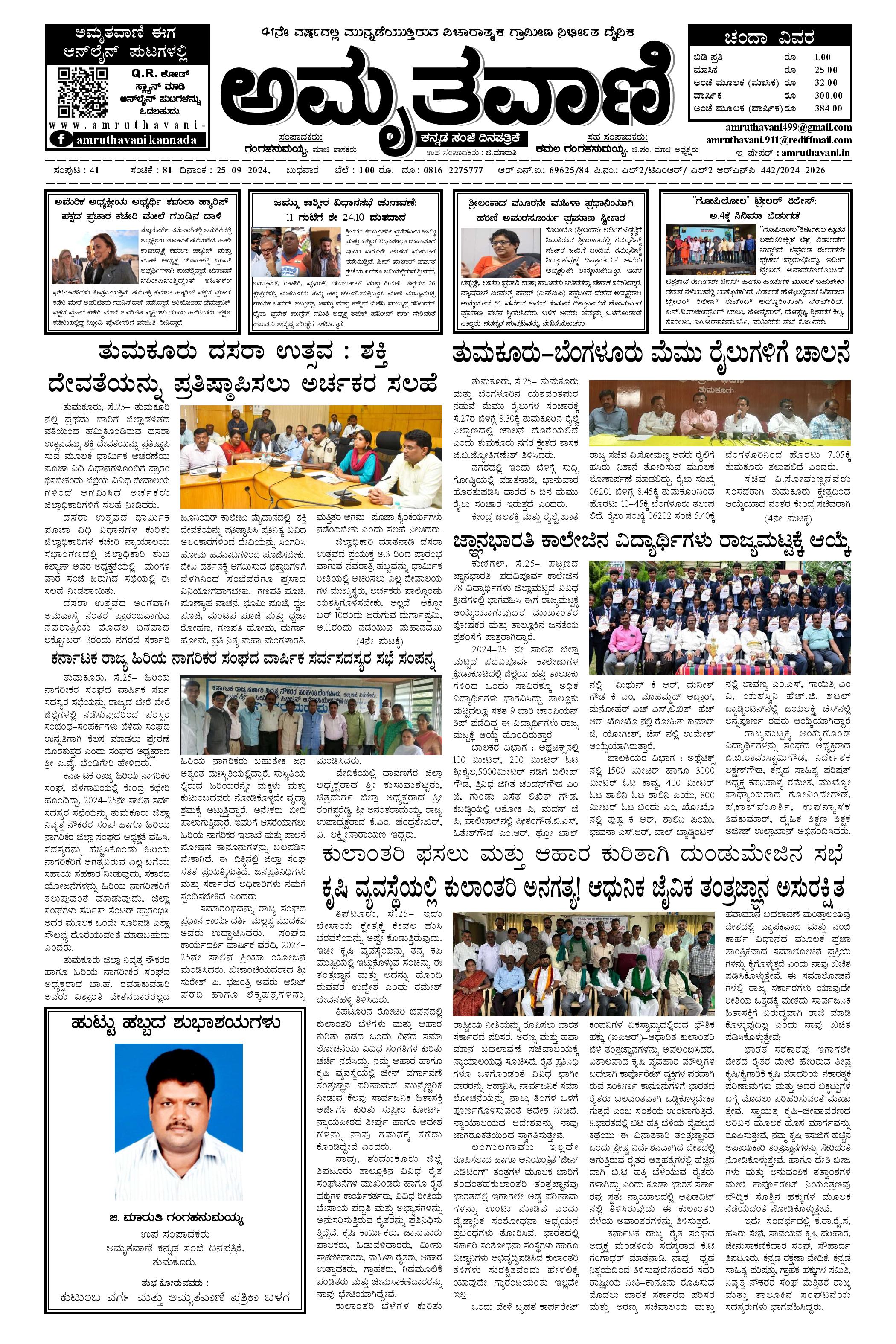 AMRUTHAVANI September 25, 2024 << First << 1 >> Last >> Page 1Page 2Page 3Page 4 × AMRUTHAVANI Sep25.pmd-page-001Sep25.pmd-page-002Sep25.pmd-page-003Sep25.pmd-page-004 << First << 1 >> Last >> Sep25.pmd-page-001Sep25.pmd-page-002Sep25.pmd-page-003Sep25.pmd-page-004 Sep25.pmd-page-001