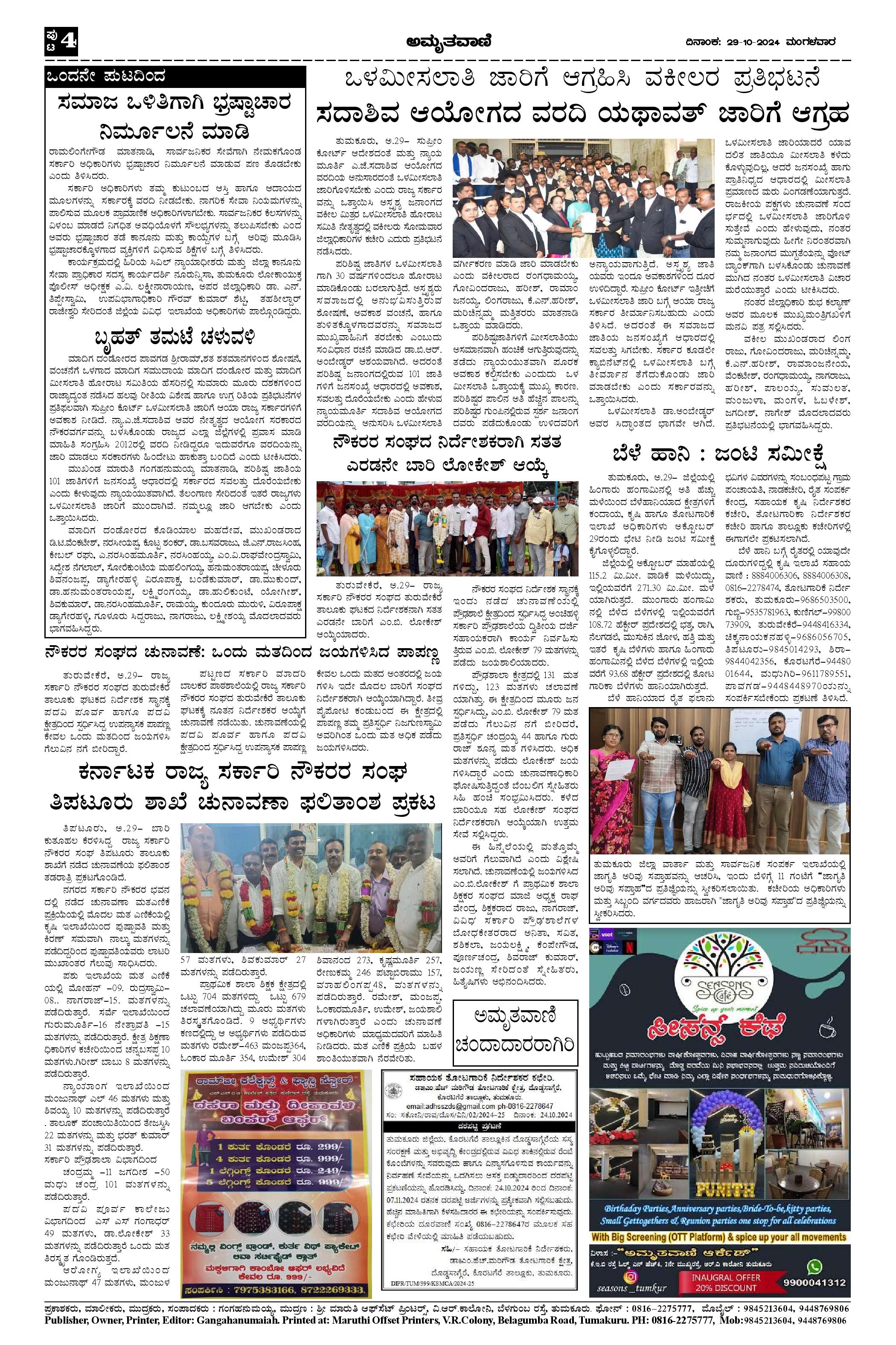 AMRUTHAVANI Page: 4 October 29, 2024 << First << 4 >> Last >> Page 1Page 2Page 3Page 4 × AMRUTHAVANI Oct29.pmd-page-001Oct29.pmd-page-002Oct29.pmd-page-003Oct29.pmd-page-004 << First << 4 >> Last >> Oct29.pmd-page-001Oct29.pmd-page-002Oct29.pmd-page-003Oct29.pmd-page-004 Oct29.pmd-page-004