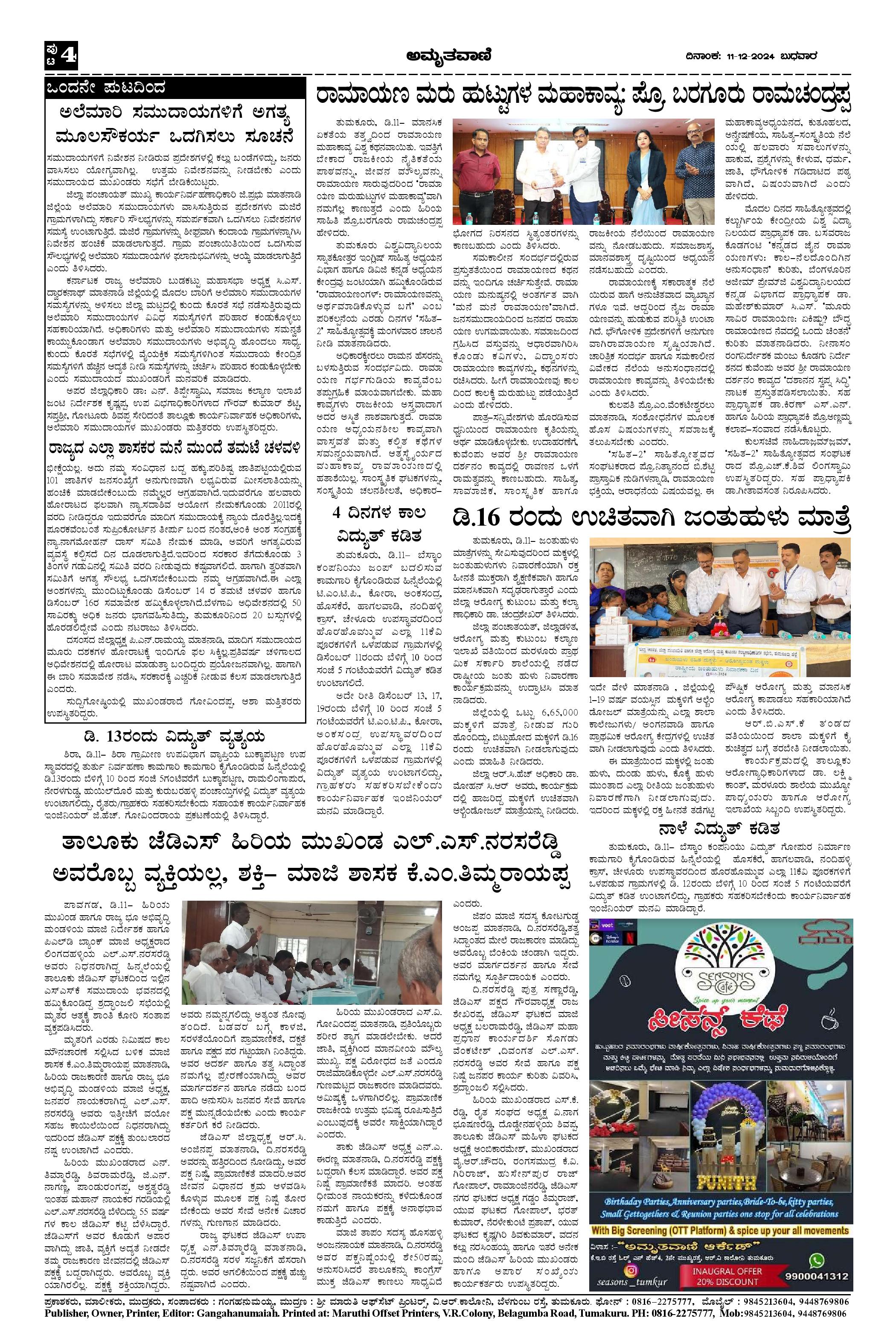 AMRUTHAVANI Page: 4 December 11, 2024 << First << 4 >> Last >> Page 1Page 2Page 3Page 4 × AMRUTHAVANI Dec11.pmd-page-001Dec11.pmd-page-002Dec11.pmd-page-003Dec11.pmd-page-004 << First << 4 >> Last >> Dec11.pmd-page-001Dec11.pmd-page-002Dec11.pmd-page-003Dec11.pmd-page-004 Dec11.pmd-page-004