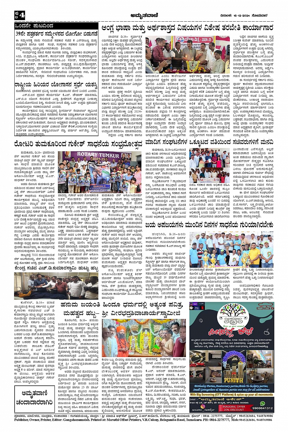 AMRUTHAVANI Page: 4 December 16, 2024 << First << 4 >> Last >> Page 1Page 2Page 3Page 4 × AMRUTHAVANI Dec16.pmd-page-001Dec16.pmd-page-002Dec16.pmd-page-003Dec16.pmd-page-004 << First << 4 >> Last >> Dec16.pmd-page-001Dec16.pmd-page-002Dec16.pmd-page-003Dec16.pmd-page-004 Dec16.pmd-page-004
