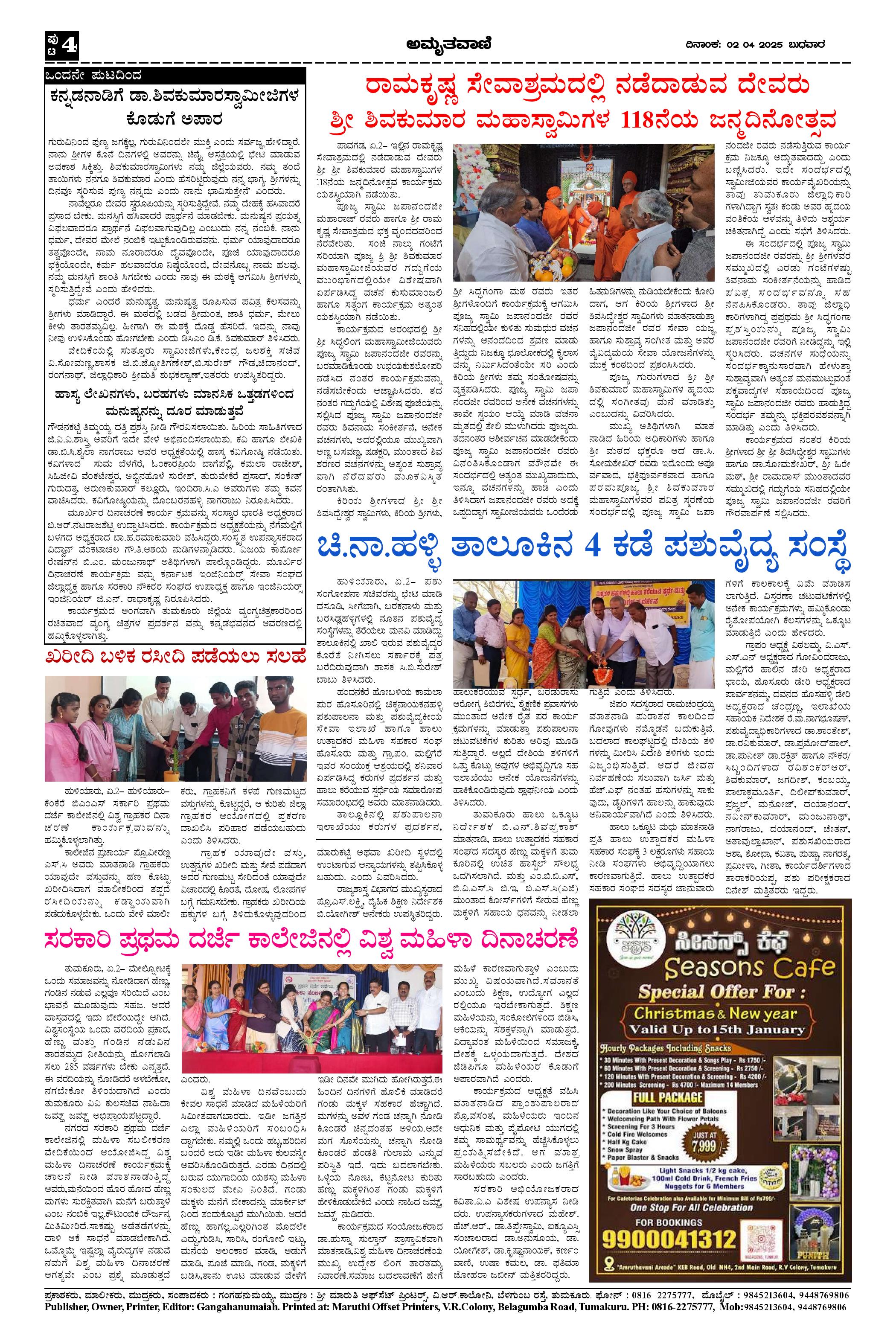 AMRUTHAVANI Page: 4 April 02, 2025 << First << 4 >> Last >> Page 1Page 2Page 3Page 4 × AMRUTHAVANI Aprl02.pmd-page-001Aprl02.pmd-page-002Aprl02.pmd-page-003Aprl02.pmd-page-004 << First << 4 >> Last >> Aprl02.pmd-page-001Aprl02.pmd-page-002Aprl02.pmd-page-003Aprl02.pmd-page-004 Aprl02.pmd-page-004