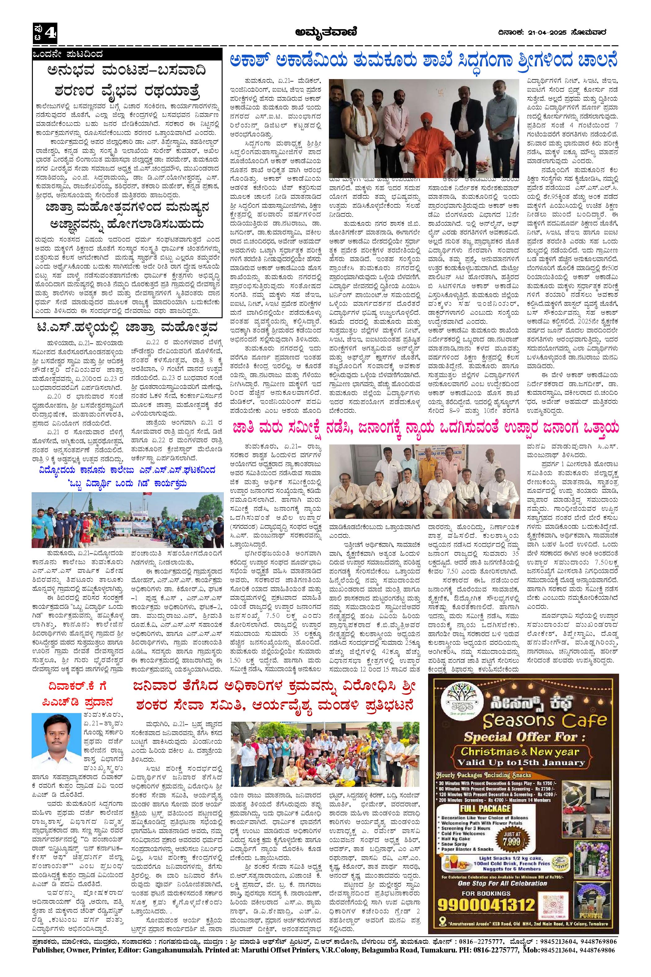 AMRUTHAVANI Page: 4 April 21, 2025 << First << 4 >> Last >> Page 1Page 2Page 3Page 4 × AMRUTHAVANI Aprl21.pmd-page-001Aprl21.pmd-page-002Aprl21.pmd-page-003Aprl21.pmd-page-004 << First << 4 >> Last >> Aprl21.pmd-page-001Aprl21.pmd-page-002Aprl21.pmd-page-003Aprl21.pmd-page-004 Aprl21.pmd-page-004