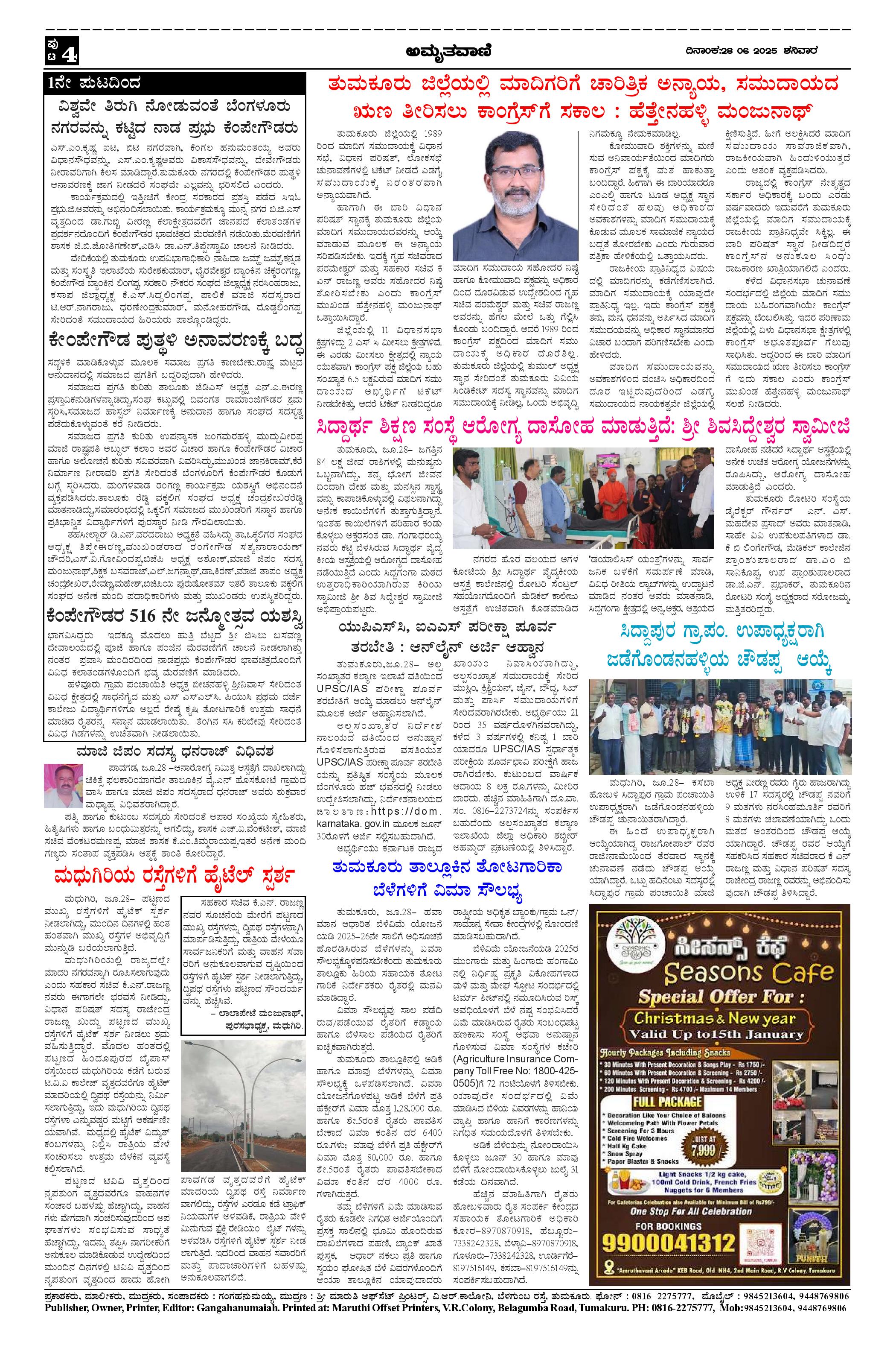 AMRUTHAVANI KANNADA EVENING DAILY NEWS PAPER Page: 4 June 28, 2025 << First << 4 >> Last >> Page 1Page 2Page 3Page 4 × AMRUTHAVANI KANNADA EVENING DAILY NEWS PAPER Jun28.pmd-page-001Jun28.pmd-page-002Jun28.pmd-page-003Jun28.pmd-page-004 << First << 4 >> Last >> Jun28.pmd-page-001Jun28.pmd-page-002Jun28.pmd-page-003Jun28.pmd-page-004 Jun28.pmd-page-004