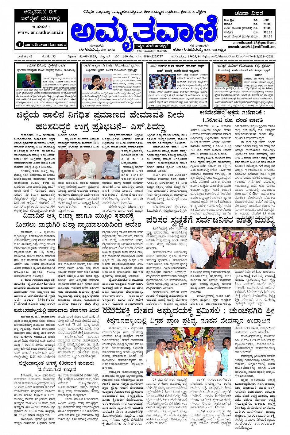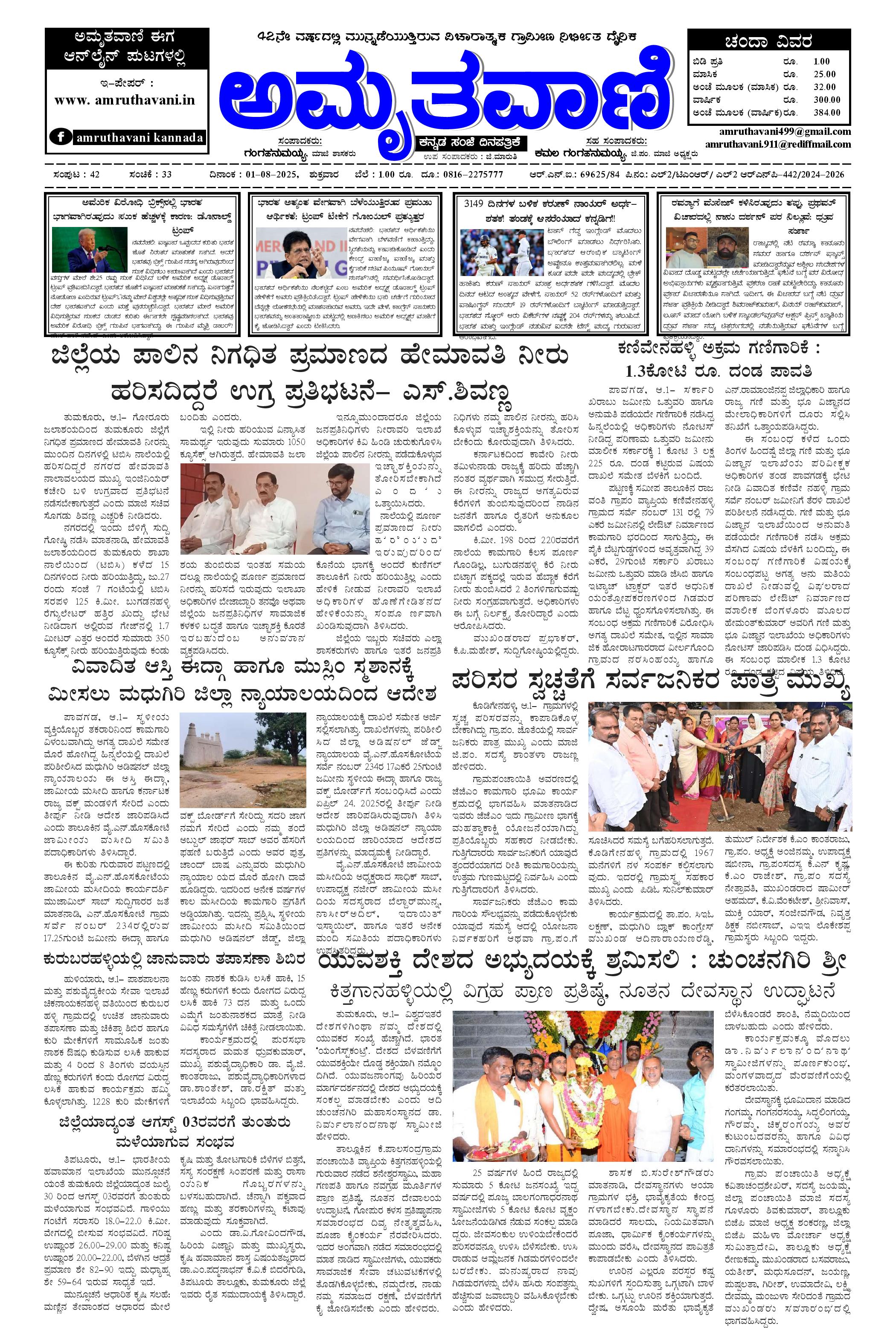 AMRUTHAVANI KANNADA EVENING DAILY NEWS PAPER August 01, 2025 << First << 1 >> Last >> Page 1Page 2Page 3Page 4 × AMRUTHAVANI KANNADA EVENING DAILY NEWS PAPER 01-08-2025.pmd-page-00101-08-2025.pmd-page-00201-08-2025.pmd-page-00301-08-2025.pmd-page-004 << First << 1 >> Last >> 01-08-2025.pmd-page-00101-08-2025.pmd-page-00201-08-2025.pmd-page-00301-08-2025.pmd-page-004 01-08-2025.pmd-page-001